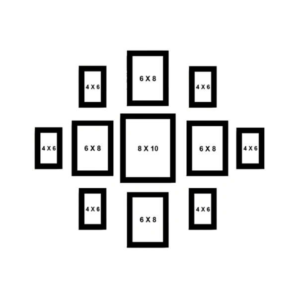 - Box Content ☞ 6 Photo frames 4"x 6", 4 Photo frames 6"x 8" & 1 Photo Frame 8"x 10" Come with stand for table top.